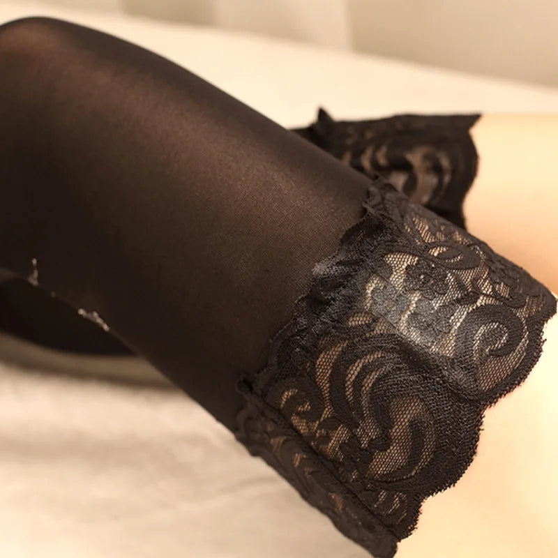 - Design: Featuring a solid pattern with an 8CM lace top, these stockings stay securely in place, ensuring a flawless fit throughout the day or night.